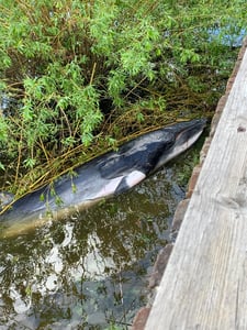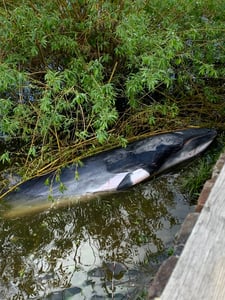 My initial thoughts were that those involved should be attempting to get the whale away from the bank before it became stranded. However, some of those in the crowd suggested that this might not have been possible once the water levels lowered due to various dangerous obstacles, such as metal railing, making the route back to deeper water risky.