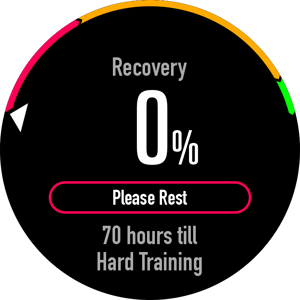 The intensity and duration of your training over the last 3 days will all impact your ability to train hard as of this second. The recovery timer is a great way to check whether or not you are likely to have sufficiently recovered from recent hard workouts to properly execute another hard session right now. Garmin has this as an hourly countdown, whereas COROS gives your recovery status as a red/amber or green zone, indicating the %age of your recovery and a short textual message to explain what to do.