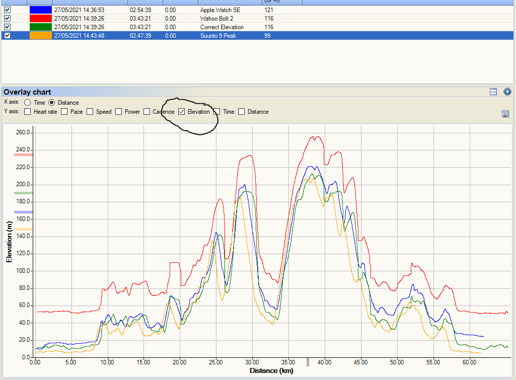 I will circle back on this at some point in the future. Here are some pertinent GPS results in various conditions and an elevation track over some Surrey hills.
