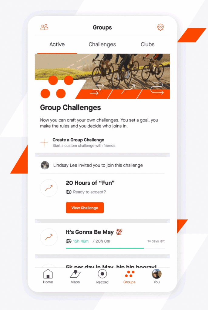 You can create a group challenge where you invite your followers to accept a challenge you have created. Your challenge could be up to a year-long and can include goals for any of Strava’s 32 sports based on speed, frequency or duration of activities. Non-subscribers can participate in 3 challenges which I think is reasonable.