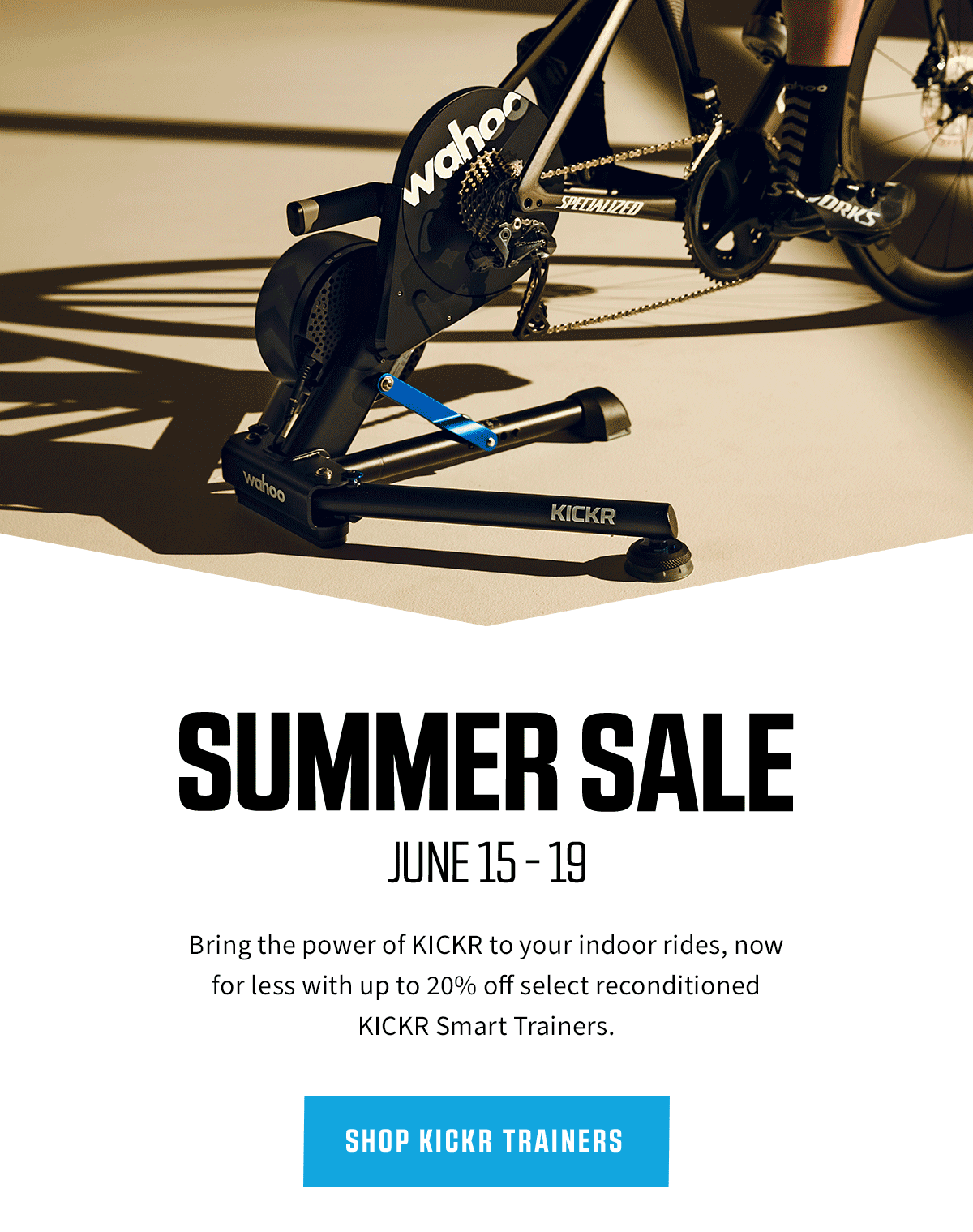 This sale applies to Kickr CORE (15%), KICKR 18 (20%) and KICKR Bike (10%)