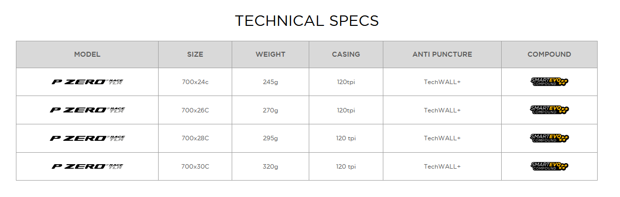 Pirelli P Zero RACE SL (TLR) – Technical Specs