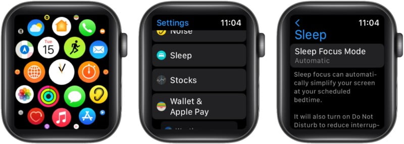 On your watch go ahead and enable tracking at Sleep App>Set Wake Time>Set Bed Time>Enable Sleep Tracking