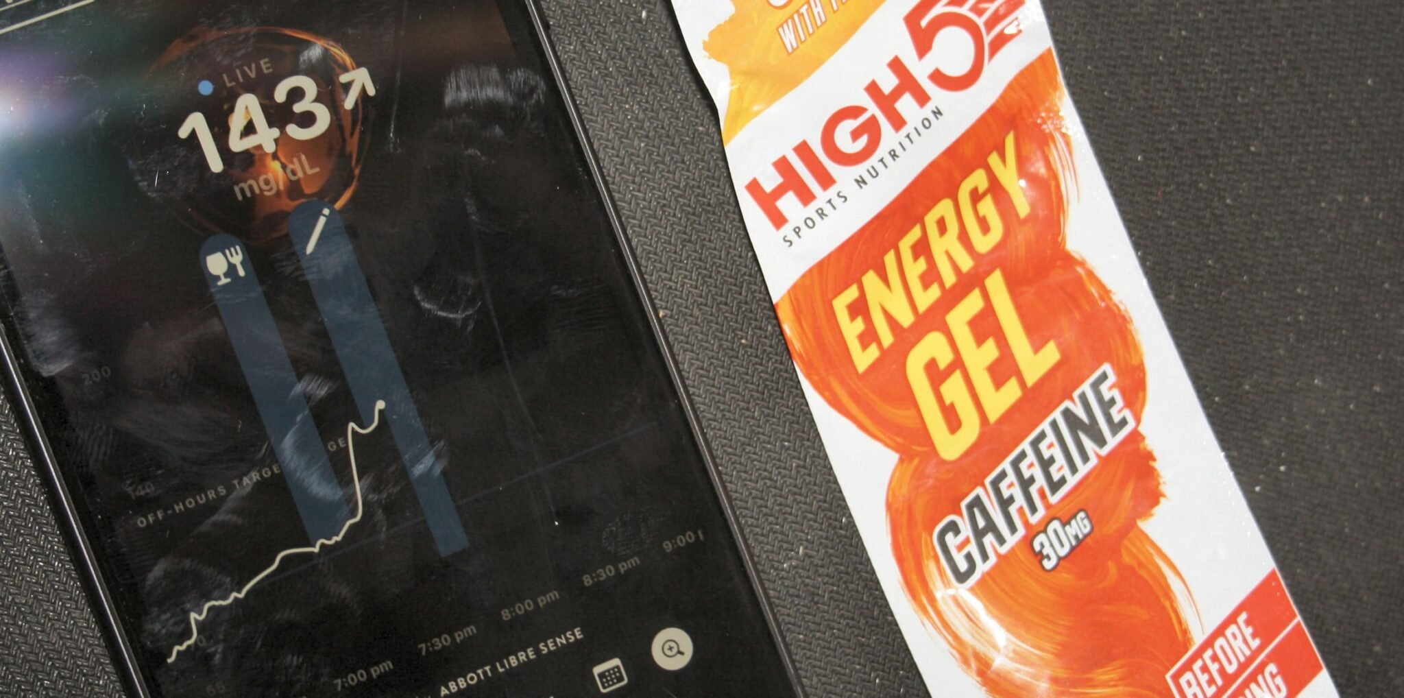 I decided to take a sports gel and see what happened. I was interested to see how long it took to get into my bloodstream. Take a look.
