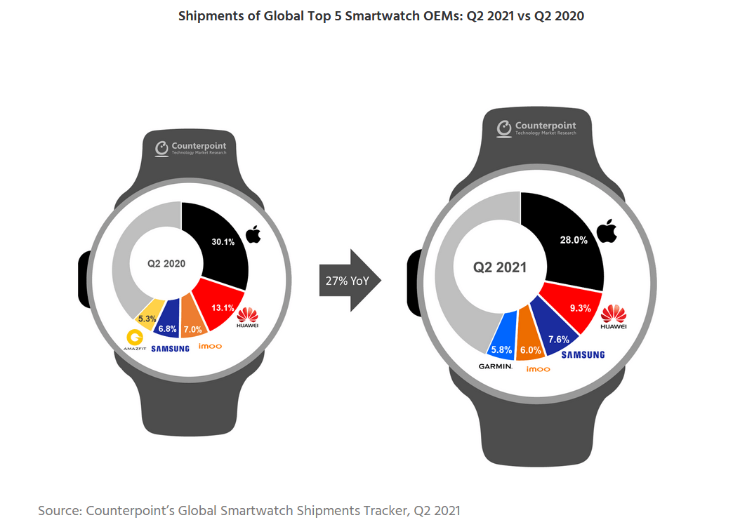 - Samsung 7.6%…think of the impact on Wear OS 3 in 2021-2022