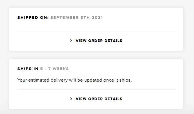 Ordered Sept 14 with a 4 to 6 week devilry window. On Oct 22 email stating delivery delays 7 to 10 weeks . I contacted support asking if that is from the original order or from Oct 22 They said that delivery status would updated today Nov 9. Basically no change and no explanation. So I cancelled the order this is not the way to launch product. Im very disappointed