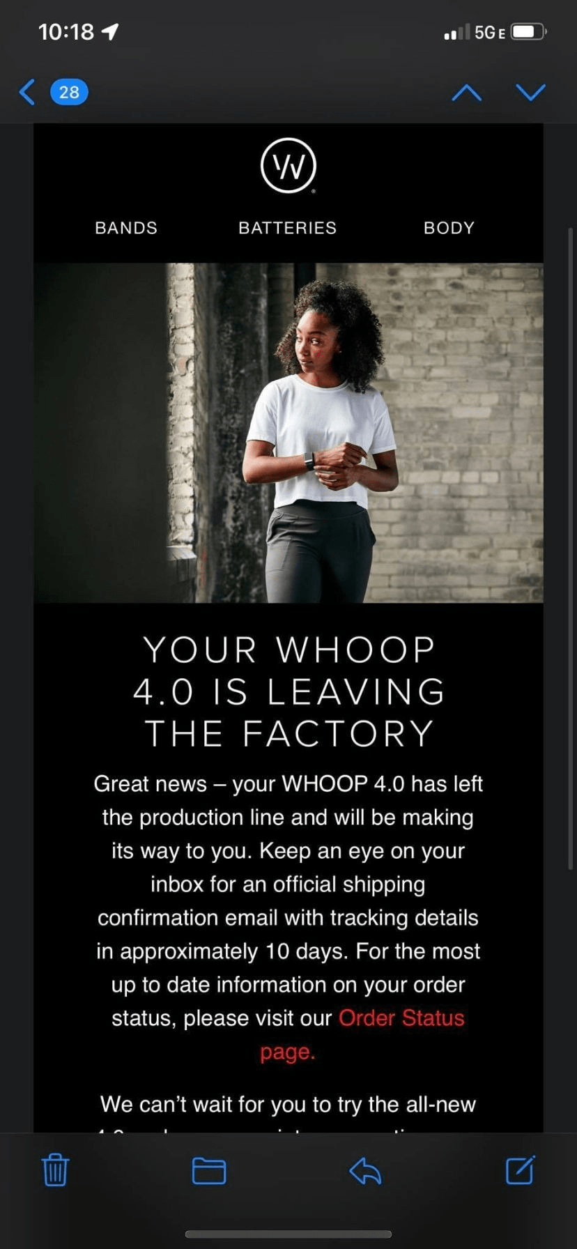 It could be the case that an electronic component, a hinge, or a strap was promised and then the subcontracted supplier reneged on their commitment for whatever reason. Stuff happens and if any single part of the WHOOP 4.0 doesn’t arrive to be assembled then, clearly, the product can’t ship.