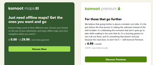 You can get a free Komoot account plus the ubiquitous premium option. Komoot’s signup process is somewhat sneaky and avoids clarity on pricing at an early stage. On that basis, I don’t recommend Komoot but if you want to use routes with Polar just go for the free option for starters, you get some free map tiles with the free account.