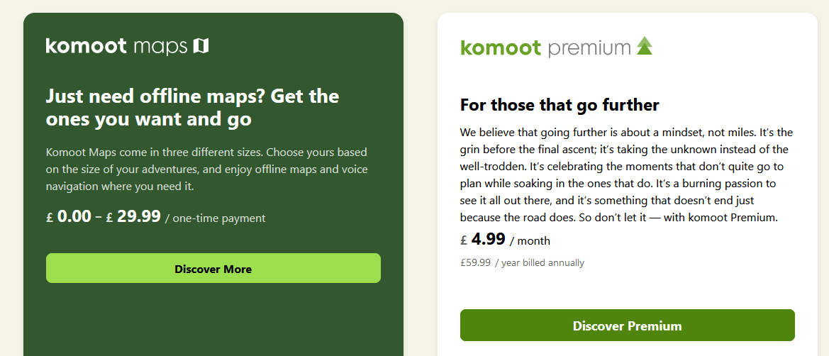 The best value is a one off cost of £29.99 for all world regions. Then you don’t have to pay a ongoing subscription unlike RWGPS and Strava.