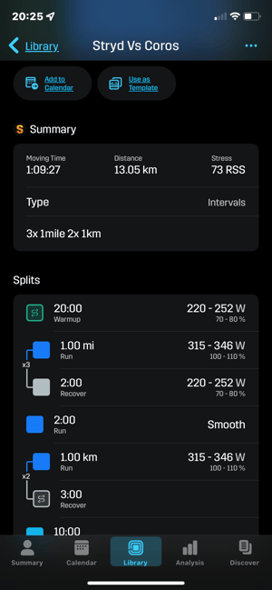 So here today we have Stryd broadly falling into a category as a specialist training plan platform and Coros offering their own native, creation-to-execution capability for their watches. Of course, the complete offering of any watch company becomes complicated as they might support multiple sources of external plans/workouts and, in Stryd’s case, they have to support their own specialist app that runs on Apple Watch and Garmin Connect.