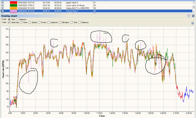You say Garmin always ends up at the bottom of the list. Quite so. Try this…https://www.dropbox.com/sh/psdyxm93y2m12j3/AABNlbBRsF2E3edvzqnnMPC4a?dl=0 those are my GPS test results and, yes, garmin ends up either in the middle of the list or at the bottom. not so with the Epix 2, it ends up at the top. I say it how I find it. If you look at all my heart rate test results then the vast majority of my garmin HR tracks are notably inaccurate. I say as much above in my Epix view, the truth being that accuracy of the tech is linked to many external variables. – to the extent where one person can’t produce any scientifically correct results on their accuracy based on a sample size of 1.