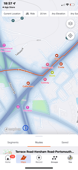 - Next, I tried to create a route to the Giro Cafe in Esher (nice coffee AND cake there), however, Strava seemed to want to navigate me to Girona, which would be nicer than Esher but a considerably more time-consuming route.
