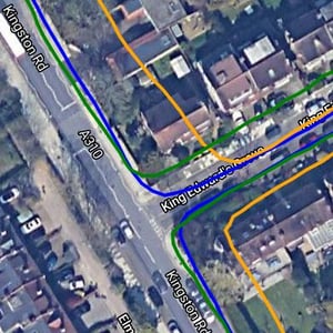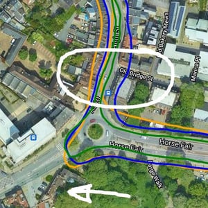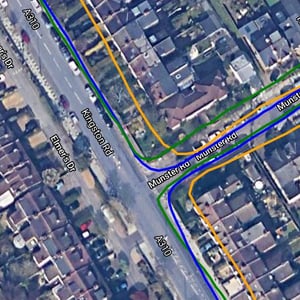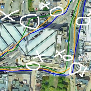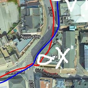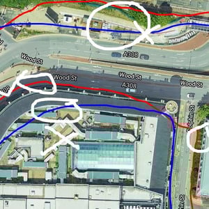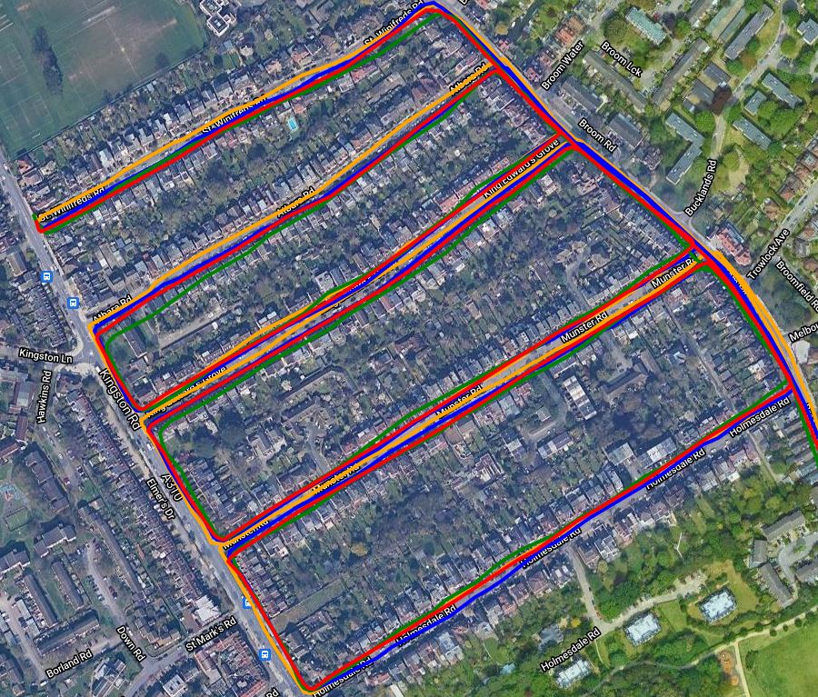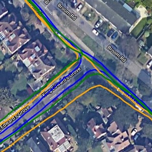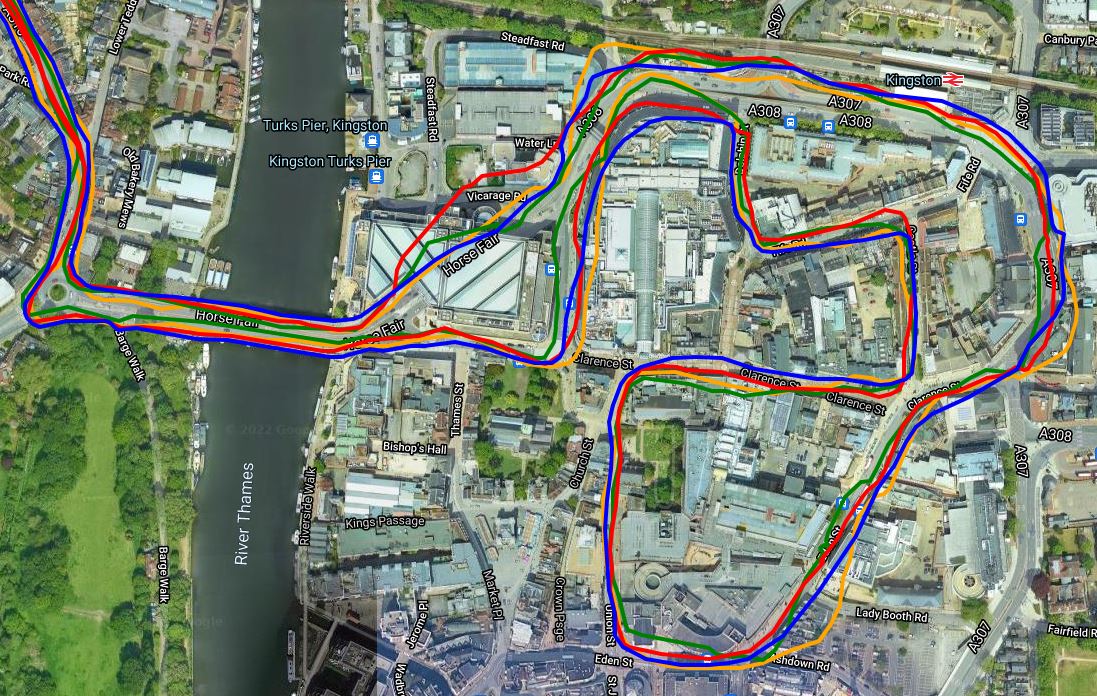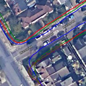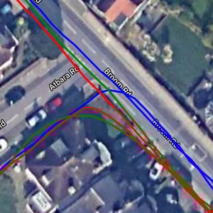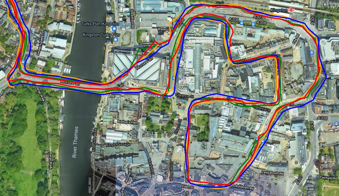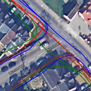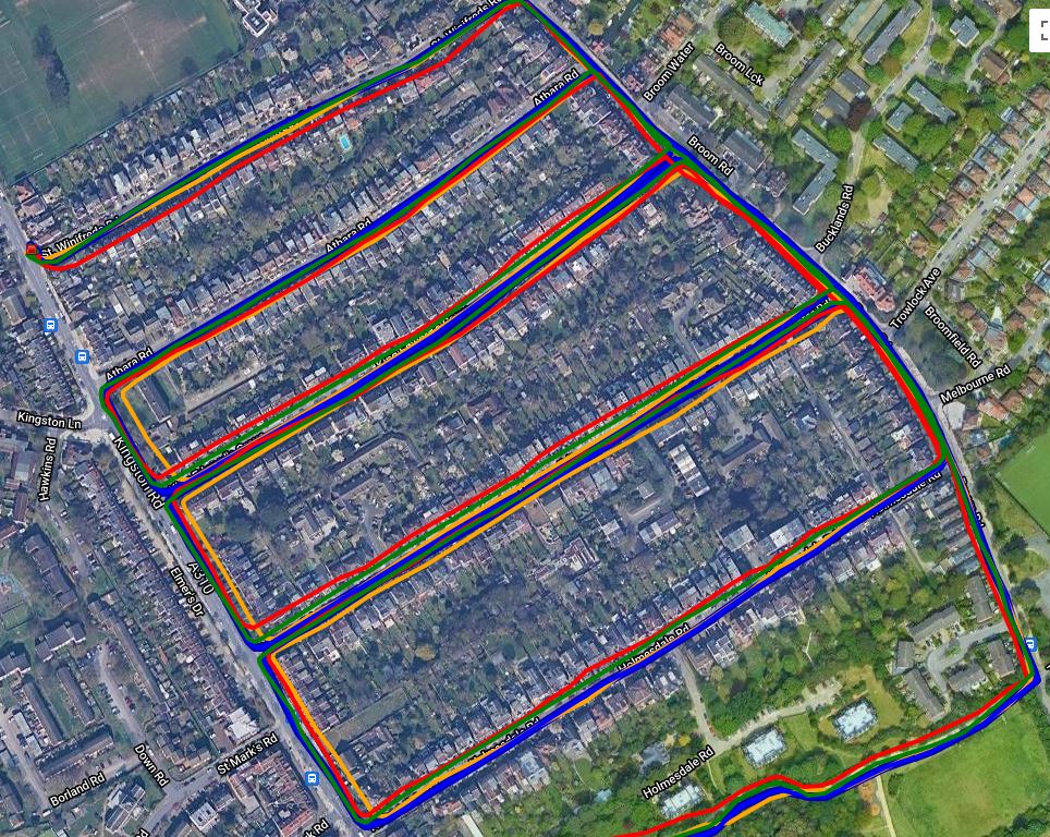 This image shows a bit more of a spaghetti mix of competing tracks and there is no clear winner at a high level despite them all just about agreeing on the approximate route. Even where the blue line appears to differ from the others it doesn’t mean it’s wrong in fact sometimes the blue line was correct and the others were not, although sometimes it was wrong as well!