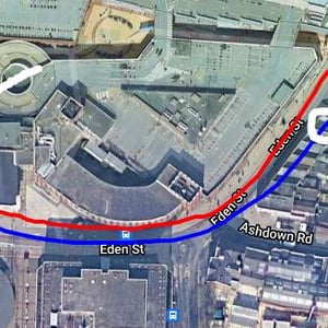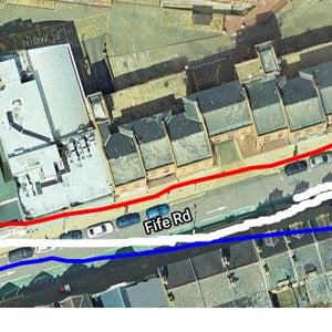 The yellow (Vertix 2) and Green (935) tracks are slightly worse so I’ll remove them for the detailed look which, remember, compares Fenix 7 GPS (Red) to Apple Watch (Blue), the latter in ‘best’ mode. The Apple Watch probably does win this but it should as it is using a supposedly better mode.