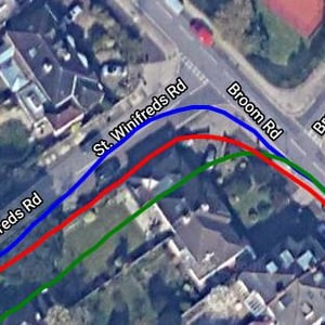 Here’s the exact same test but on a different day and with GPS-only used. There’s not too much difference at first sight! In some cases, the GPS-only track is better. However, my strict scoring regime for key points on the route gives 73% for GPS-only (very average) and 81% for all-constellations (quite good). That might have been a bit harsh on GPS-only but All Constellations is a little bit more accurate.