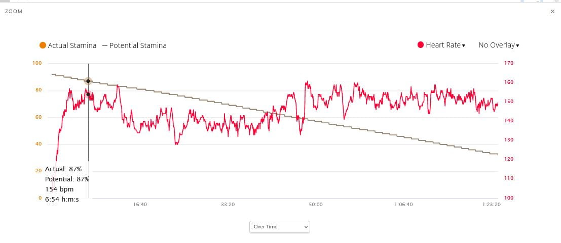 Following up from your post I found the data pretty interesting having raced this weekend. Whilst I didn’t use the stamina meter during the race I looked at the stamina data post race this weekend. Didn’t use during the race. Pleased to report that it was very accurate and would have been helpful during the race. My time for context 47:07 – Stamina hit 0% at 46:36 at which point it’s just abut guts and determination to finish. I had 14% about a minute earlier, when I started my kick to the line. Appreciate it’s 1 race for 1 person but backs up to me what you shared in your post about it being useful for 10k plus. On the basis of this result I may consider using it in future for races from this distance upwards.