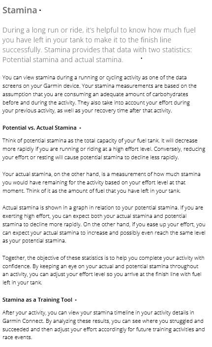 More: The information on the image below is an explanation of Stamina from Garmin. thank you for reading!