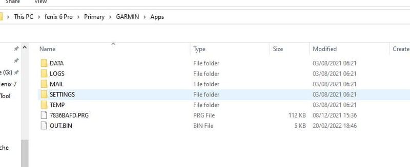 Firstly, locate a .PRG file on your watch. It’s likely to be in a location like This PC\fenix 6 Pro\Primary\GARMIN\Apps. However, as the two images show from the 935 and Fenix 6Pro, you might find subtle differences. It seems to me that all the apps on the Fenix seem to be combined together in one single .PRG file?