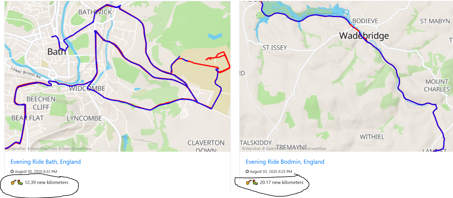 Me? I’ve racked up an unimpressive total of 135km of new roads this entire year and certainly don’t qualify for the Wandrer leaderboard. I keep plugging away though and WANDRER tells me how many new KMs I do on each ride, like this