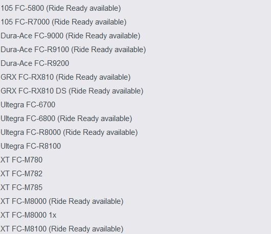 You can have these installed onto your existing cranks at your local service centre or you can buy new cranks directly from 4iiii where their power meter comes preinstalled. Currently, the pre-installed option is available on a wide range of Shimano cranks (see image to right, March 2022).