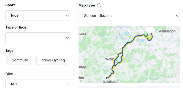 Simply edit and change the Map type to ‘Support Ukraine’ for your route to appear in yellow and blue, as shown above.