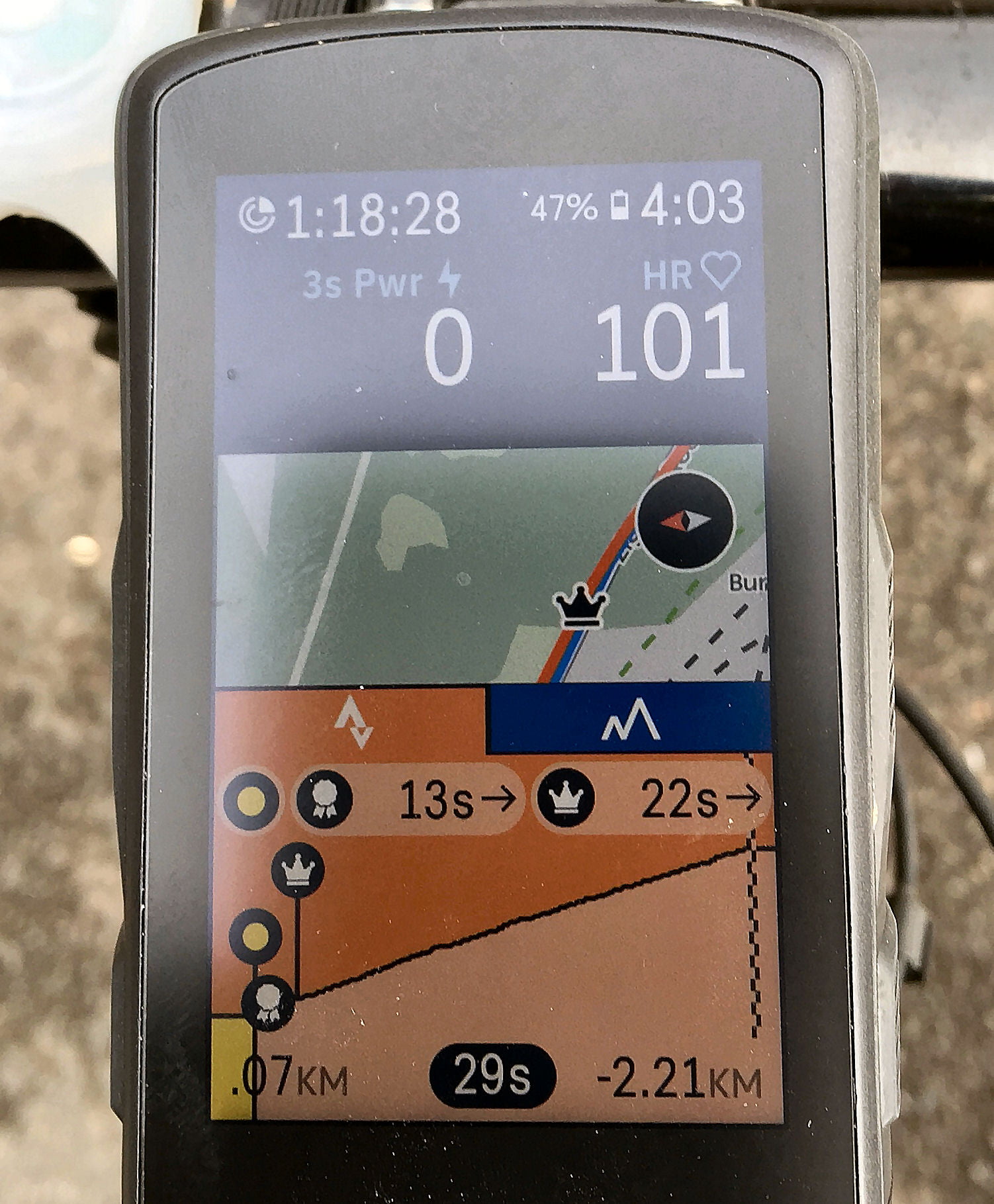 Interesting: Partly delivered today is the abilty to see tooth count during shifting. This shows the actual gear tooth counts currently in use eg 52×28. It might be nice to see the divided out ratio too? But I always find these metrics to be ‘one metric too far’, invariably I have different cassettes on different wheels and when I change wheels I jsut can’t be bothered to make the corresponding changes in the head unit. Sorry!