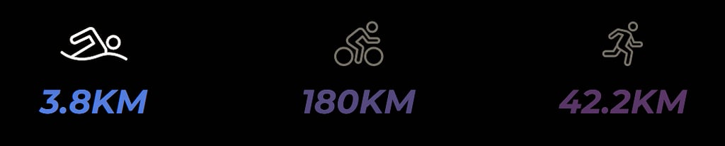 The course is the same distance as for an Ironman event: 3.8km swimming, 180km cycling and 42.2km running. In simple terms that’s probably way further than you have ever swum, followed by over a 100-mile cycle and then a marathon.