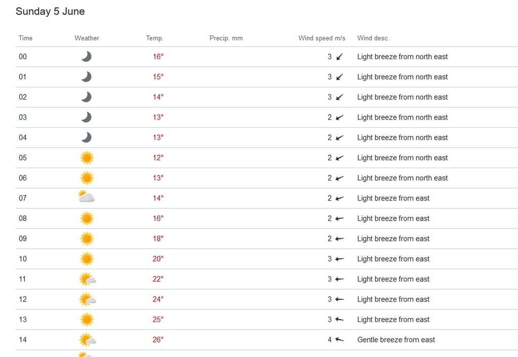 The weather conditions also look perfect until later in the morning when it is too hot to be optimal.