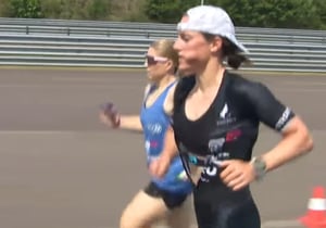 Transition is followed by a 20k road ride that’s usually downwind to the Lausitzring for 27 laps of the fast, 5.85km Oval. Expect to see an average speed of over 30mph/48kph for the men and over 42kph by Katrina Matthews
