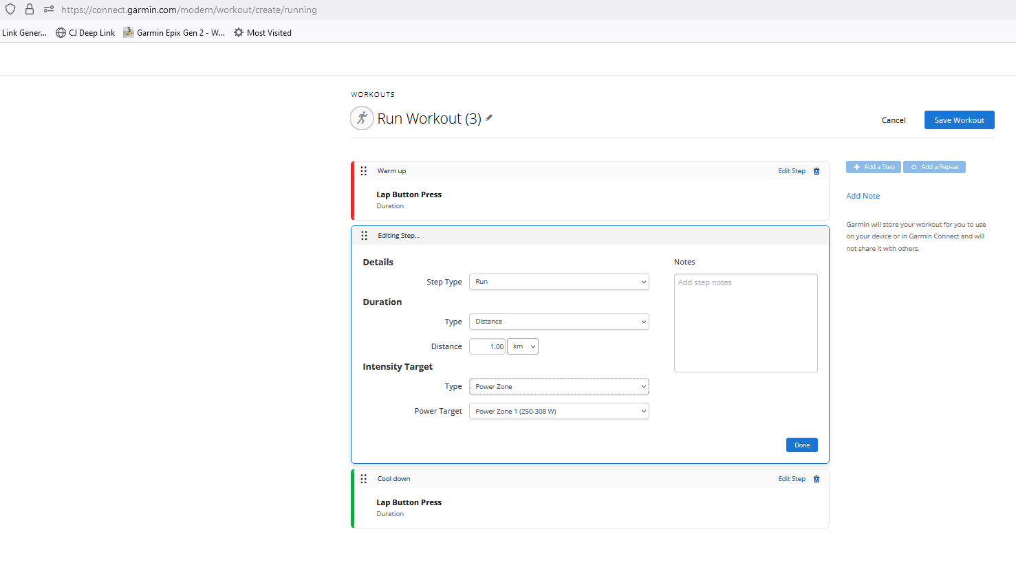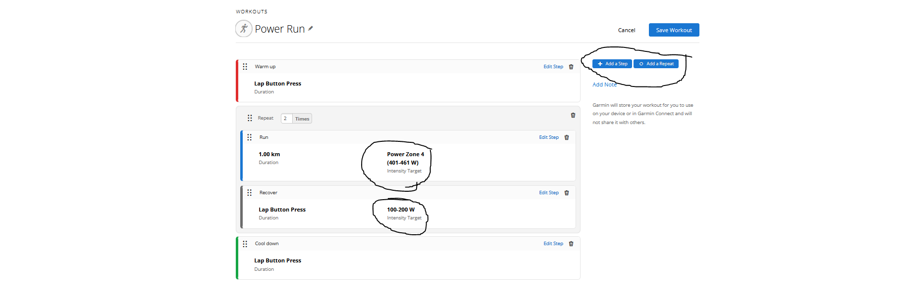 I’ve been trying on the Garmin Connect web app, but there doesn’t seem to be a spot for me to add a power step?