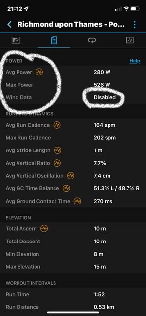 I’m sceptical to the general usefulness of weather forecasts for wind power calculations, and there should be an option to disable that. Even Stryd can be iffy at times.