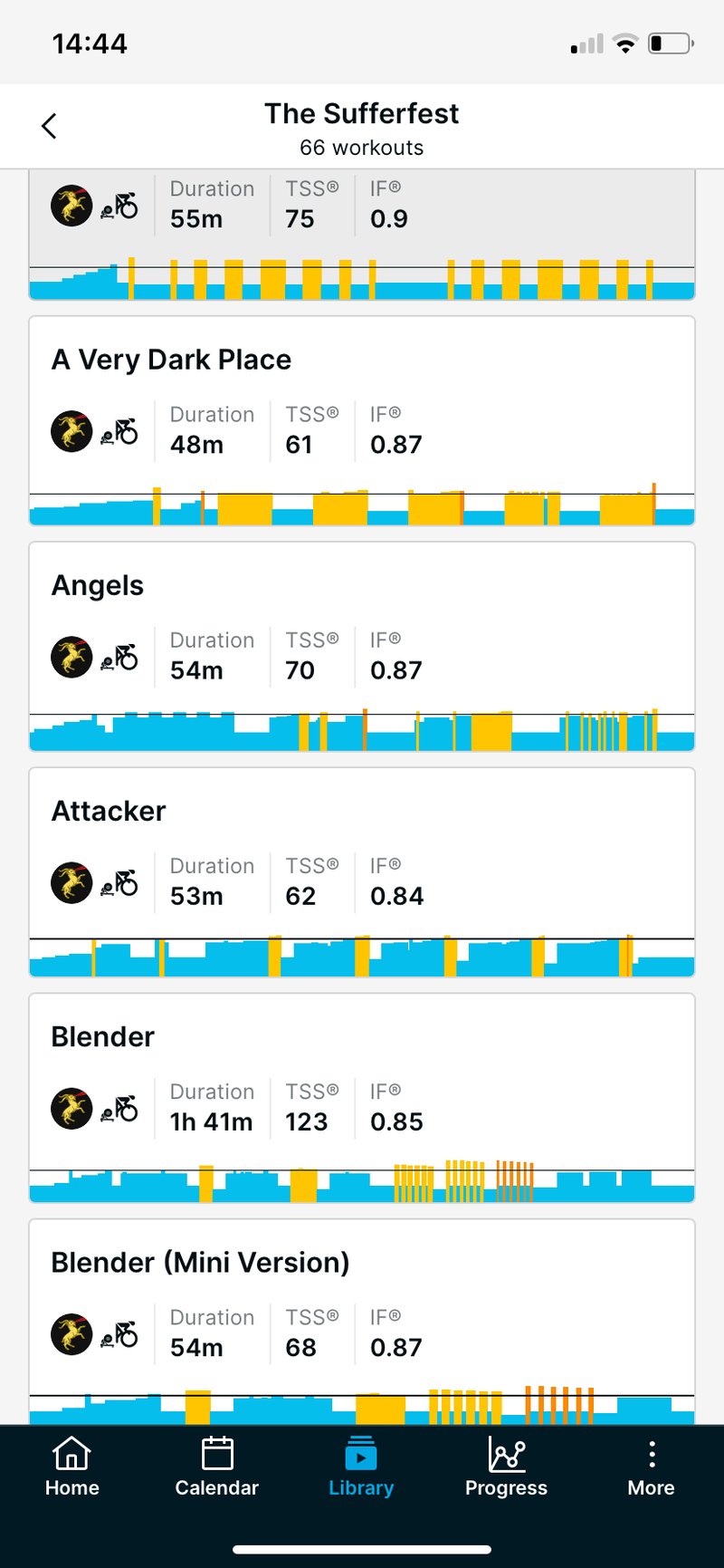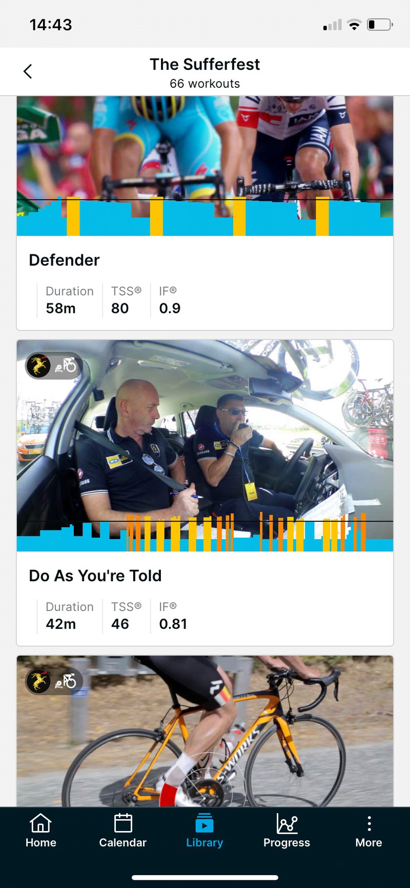 The Sufferfest was the original acquisition by Wahoo and it contains structured workouts that control your smart trainer. The name implies that the workouts are hard…and some of them are very hard. There are some less hard ones too, the video and audio encouragement are optional but are part of the ‘fun’.