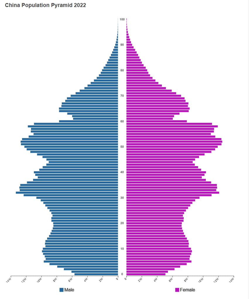 Fact: China’s demographics are unfavourable. By the end of the century, the population could easily be half its current size. Supporting an ageing skewed-male population and first-rate military thus becomes economically difficult for China in our lifetimes.