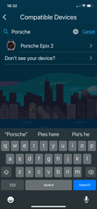 If you want to find the same info yourself check out Garmin Connect on your smartphone and navigate to the section where you add a new device. Search for “PORSCHE” and it will appear. Like this…