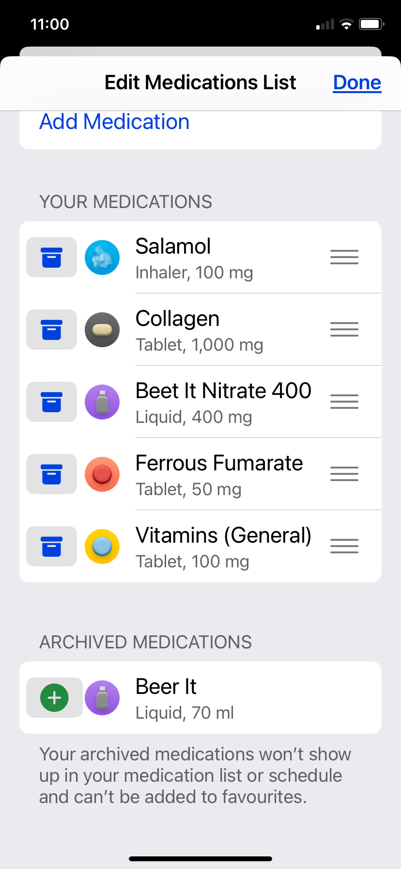TL;DR – Your Apple Watch or iPhone reminds you to take your supplements even if you have a complex schedule. It’s great for indicating precise doses with a visual cue. Turning off or re-enabling supplements is easy and can handle changing requirements, for example, when you taper.