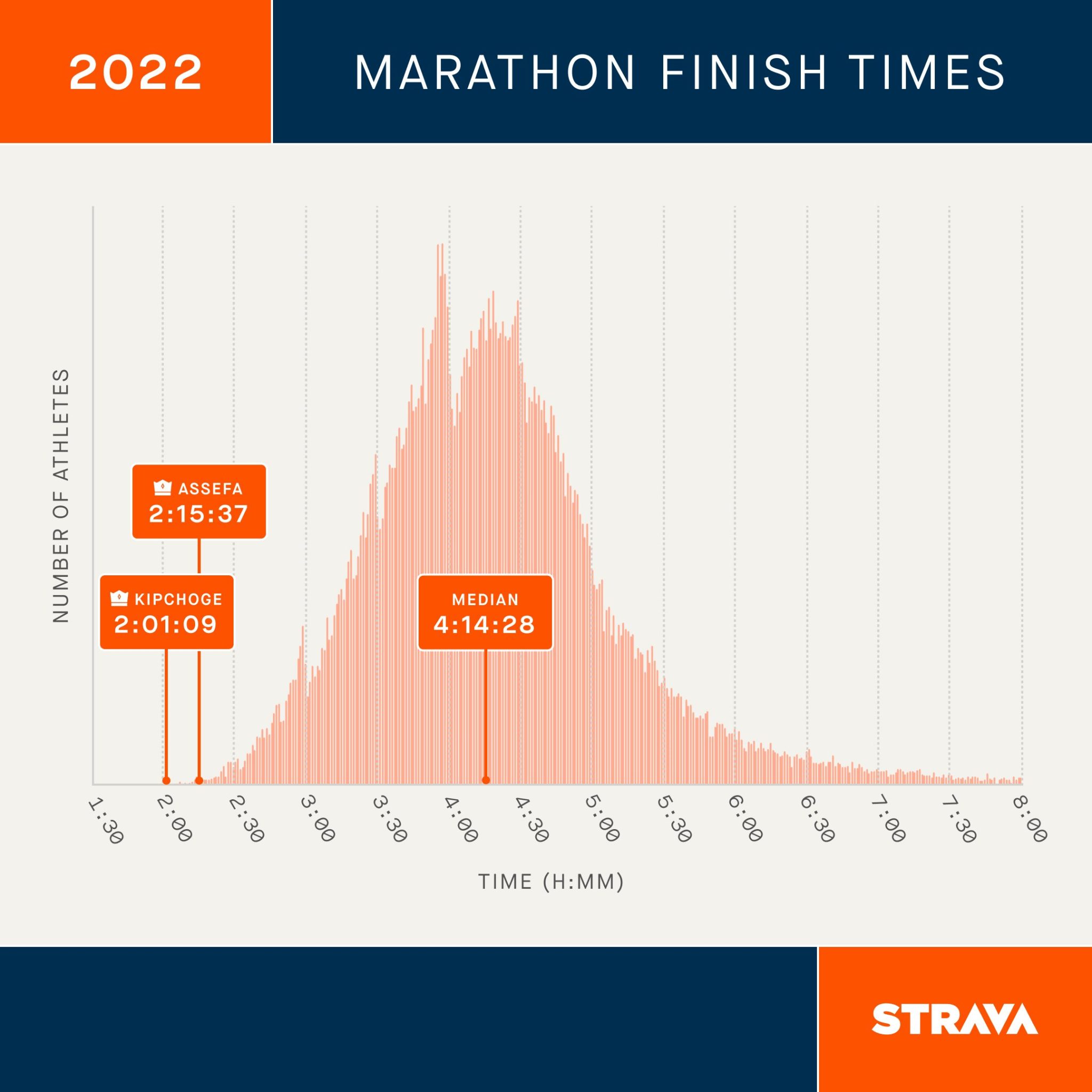 8% of Strava users registered a sub-3-hour finish time whereas another 7% of men came in just short of 3-hour coming in below 3 hours 5 minutes. More than one in ten women logged Strava times of under 3 hours 35 minutes,