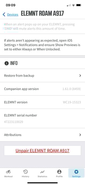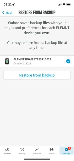 This should work across all ELEMNT bike computers, but for some reason, when I was testing, only a backup from the ROAM 2 showed up.