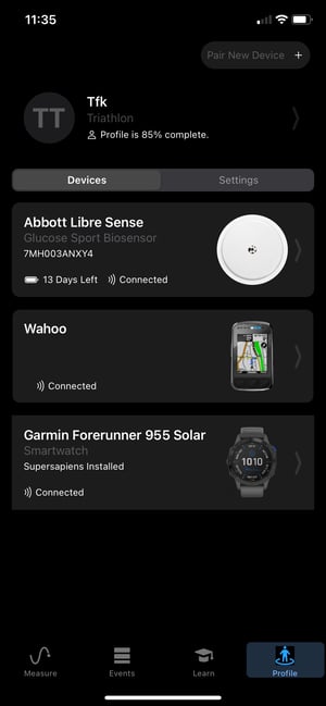 A: As an athlete, you realise that your ability to perform is fundamentally constrained by the availability of fuel and oxygen to burn the fuel. That’s why Wahoo now supports interstitial glucose and muscle oxygen sensors.