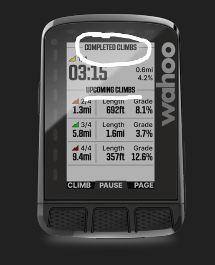 In a few weeks, all the latest ELEMNT bike computers [ROAM 1, ROAM 2, Bolt 2 only] will get Wahoo’s latest development of hill functionality aimed to guide you better up upcoming hills. It’s similar to the CLIMB features already offered by Garmin and Hammerhead.