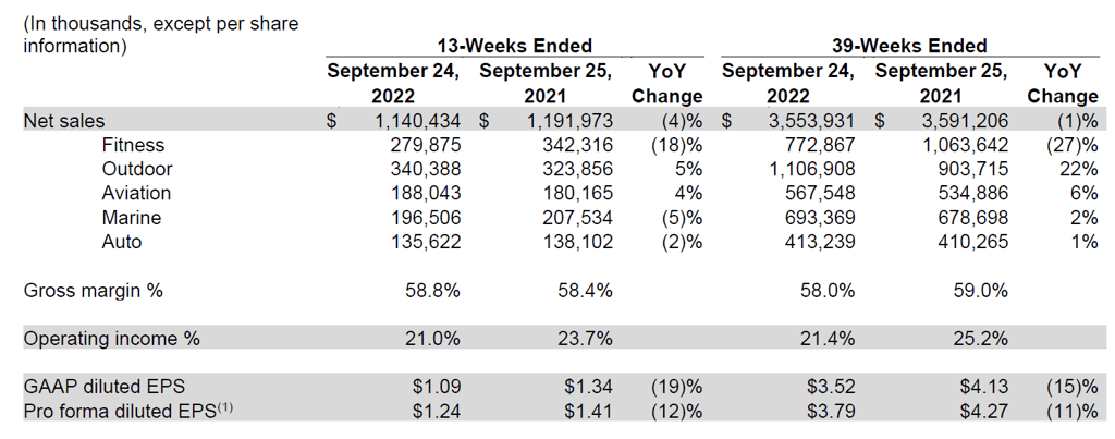 How things have changed. Once an ever-growing tech company, Garmin is now very much looking at stagnation as its Q3 results for 2022 are published.
