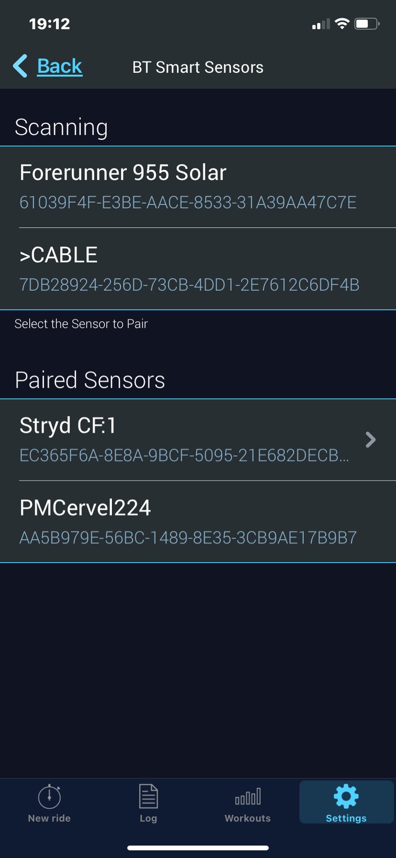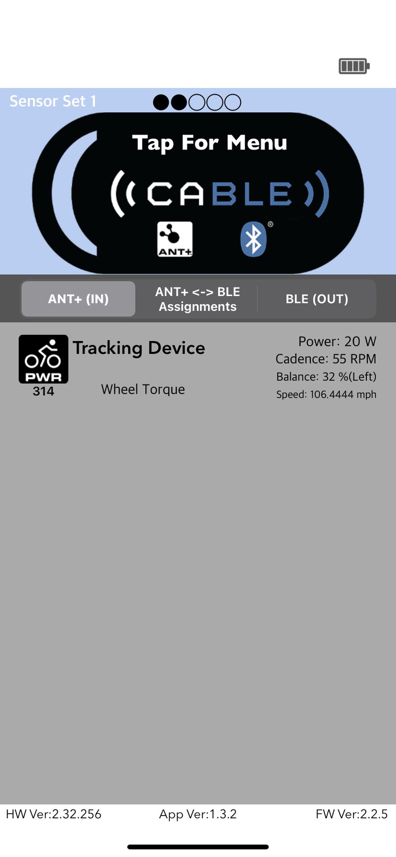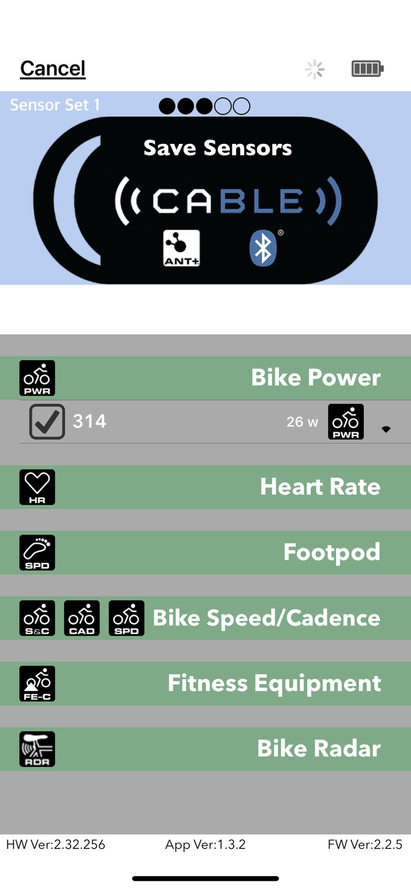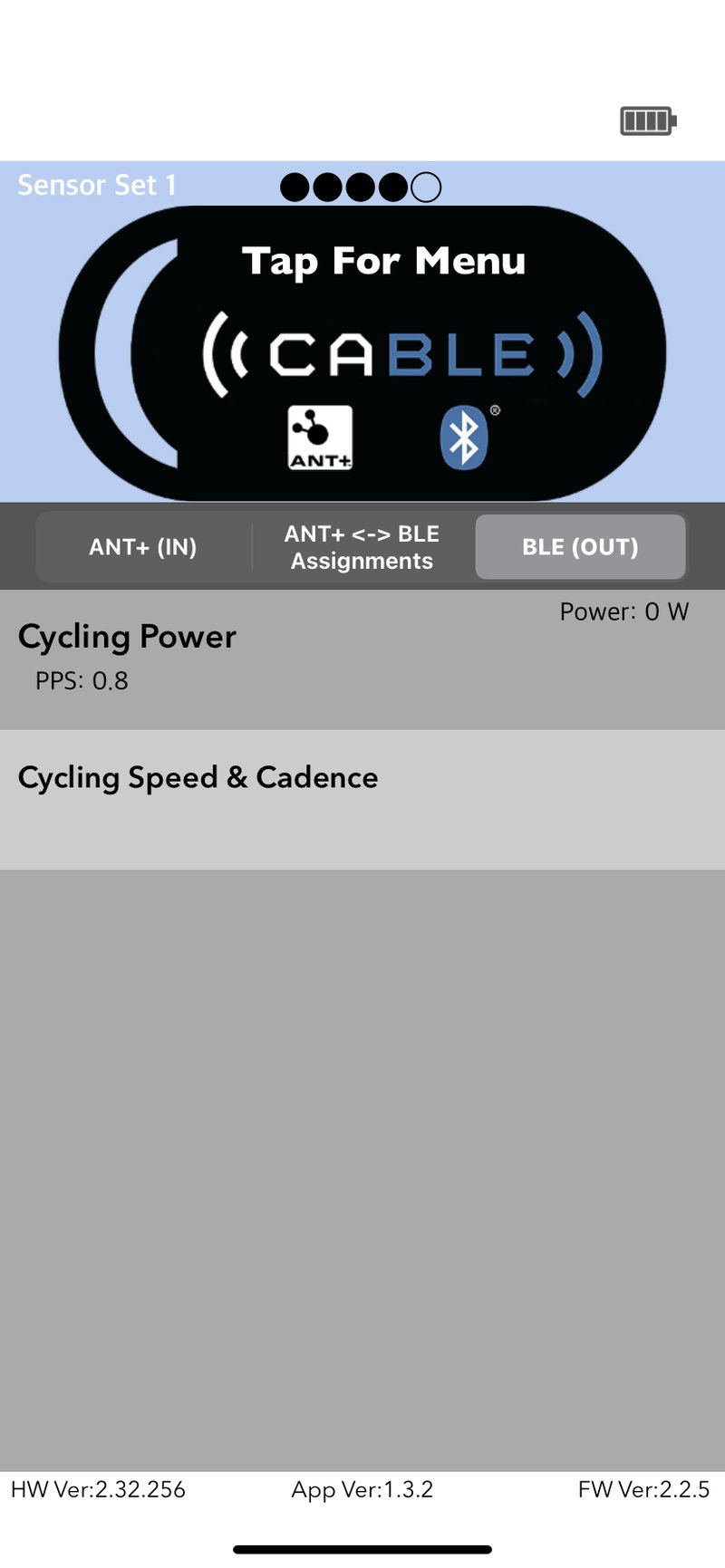 Download the free, iOS CABLE Utility app and tap the $50 CABLE pod on your iPhone to pair. The menu is strangely squirrelled away at the top of the app all you need to do is get the POD to scan for ANT+ sensors and then say which capabilities of each sensor you want to convert to BLE.