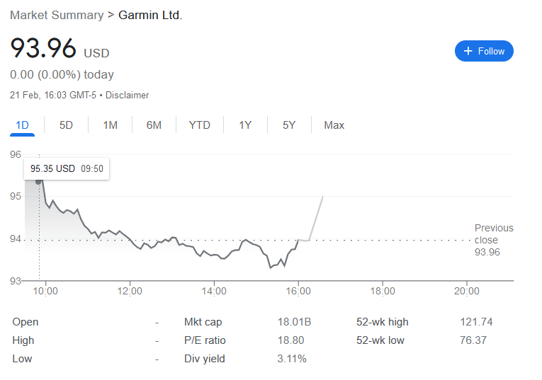 The markets have NOT reacted badly to this news. Clearly, they expected something similar. Over the last 5 days, Garmin has only very slightly underperformed falls on the tech-heavy NASDAQ (GRMN is listed on NYSE as of 2021).