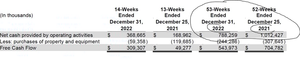 Presumably, the Q4 cash situation compared to 2021 was improved by reducing expenditure on property/equipment