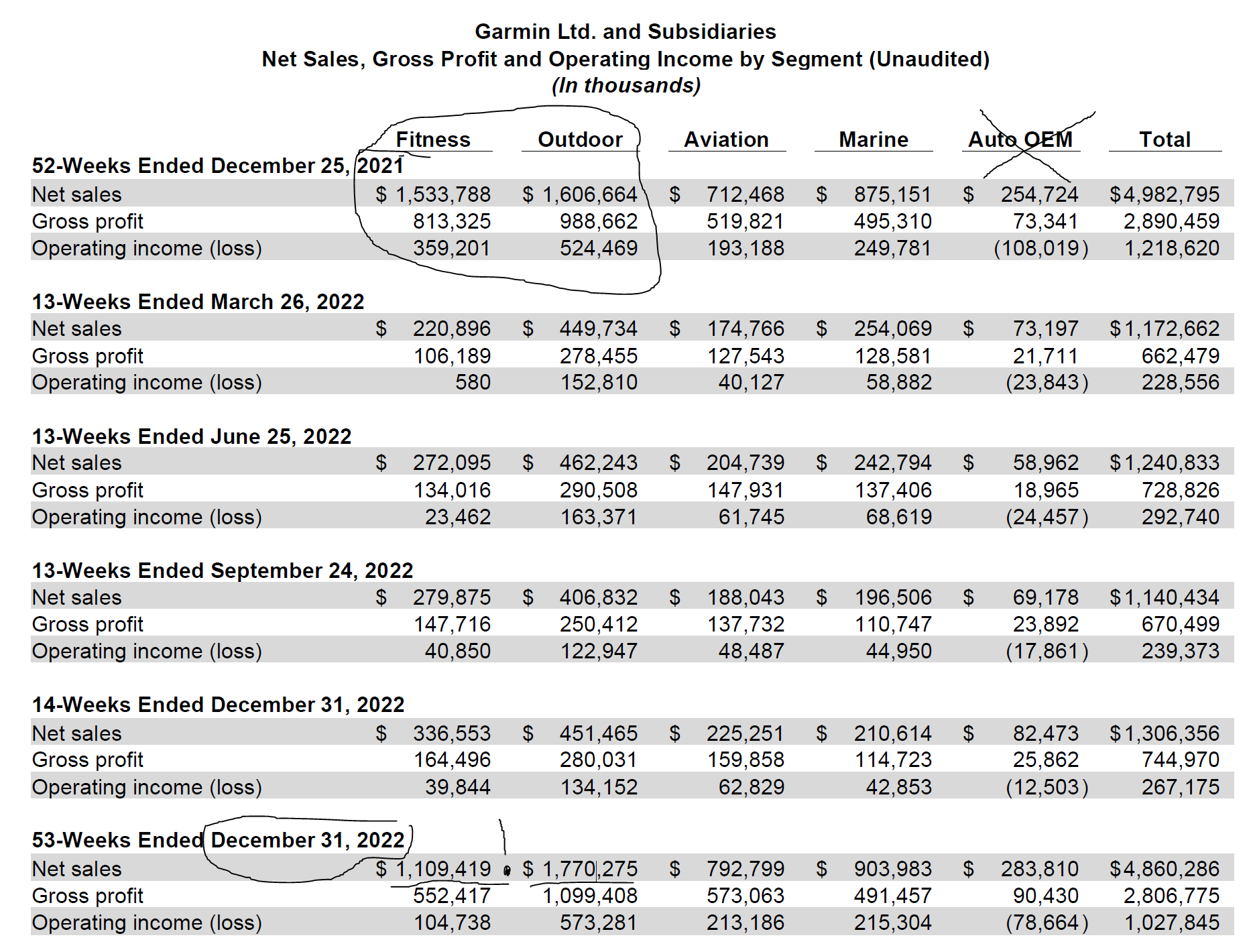 however there is also this “Outdoor: Revenue from the outdoor segment grew 3% in the fourth quarter primarily due to growth in handhelds and services.”, so this is implying to me that Fenix and Epix could be experiencing some decline