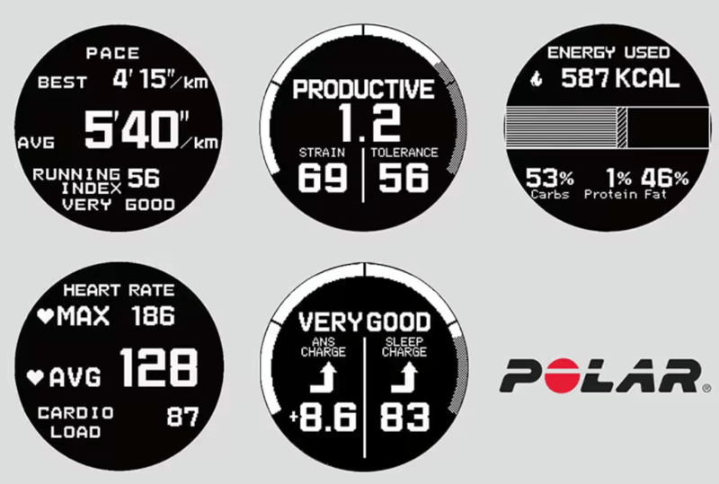 The Casio+Polar collaboration focuses on 5 key measures; Running Index, Training Load Pro (incl HR Zones, Cardio Load & Cardio Load Status), Energy used, and NIGHTLY RECHARGE.