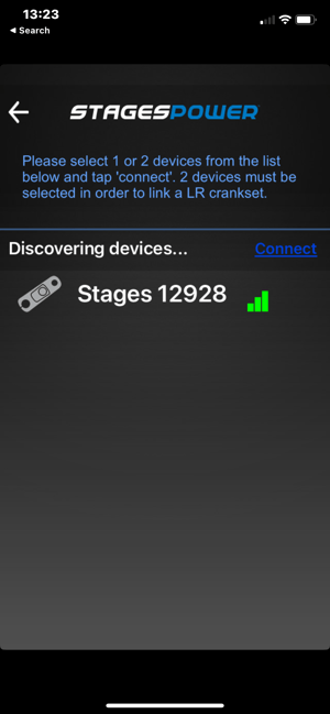 - LR – LR refers to Left and Right, meaning you have a power meter on each side ie it is Dual Sided power. LR is considerably more expensive than single-sided and should be more accurate but I don’t think it matters too much if you get L only (buy a left crank power meter for your existing setup). Whilst cycling, you will rarely consider the individual left and right power values but their total should be more correct if measured separately and added. You use the Stages Power app to pair the two together and then you pair your bike computer to the ANT+ ID on the Left crank