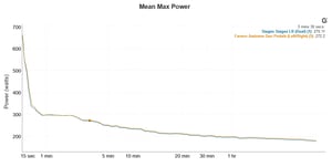 With the gyroscope enabled Stages still seem to undercut the cadence a little. The resulting power curves look identical but drilling down into random sections of the ride you can see that the Stages is undercutting the power a tad too. This ride was with older firmware.