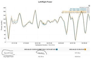 Left power and right power also seemed similar. I was surprised that both reported my right power to be higher.