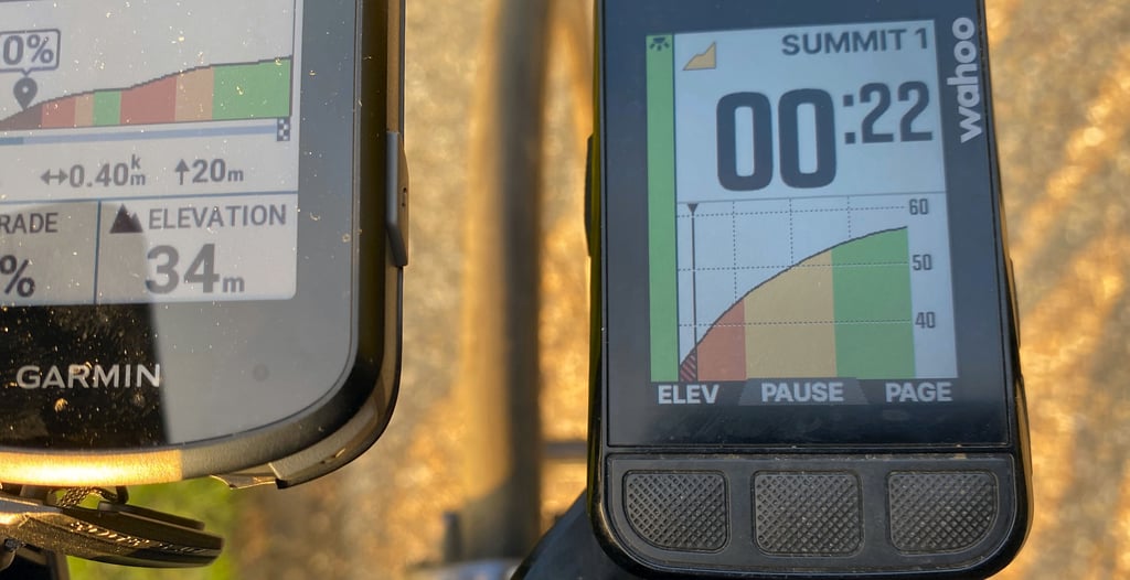 With Garmin’s implementation of the same feature, I initially became concerned about the definition of the start- and end-points of the hill. In my tests, sometimes Garmin and Wahoo exactly agree on those two points, but at other times Garmin might end earlier or start considerably earlier. However, I don’t think that particularly matters in the grand scheme of things.