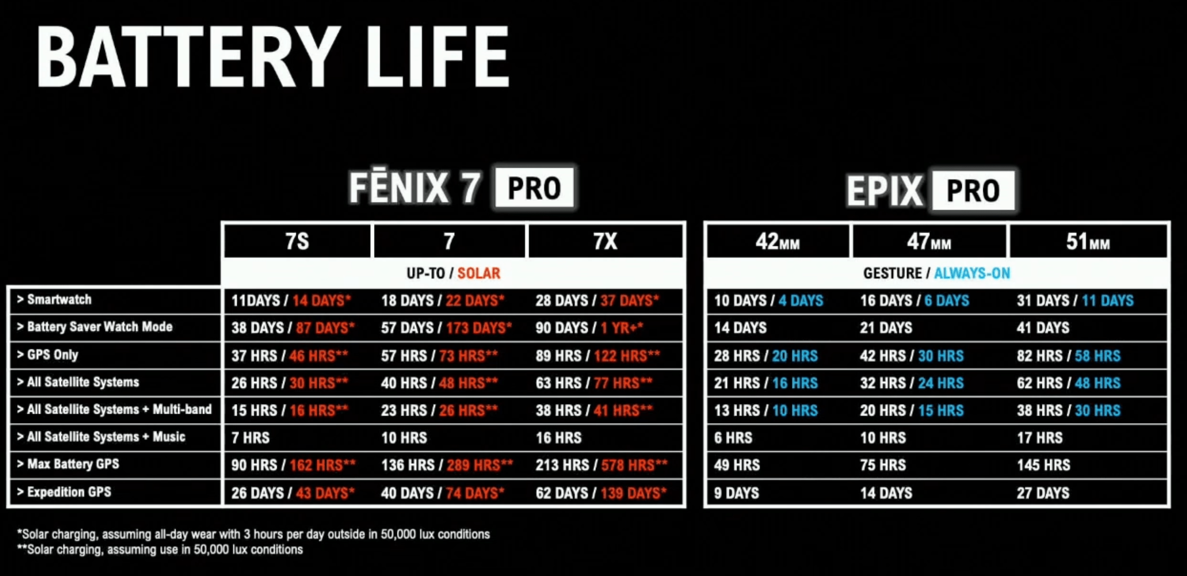 Wow, with those kind of battery specs on the Epix 2 Pro 51mm, why bother with a fenix 7X